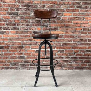 Taburete giratorio madera Acacia color nogal pletina en respaldo