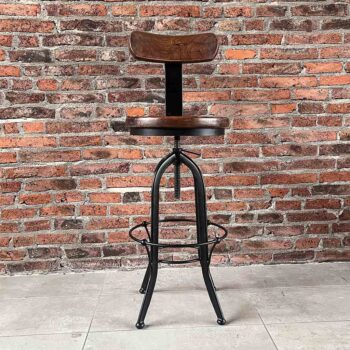 Taburete giratorio madera Acacia color nogal barritas en respaldo